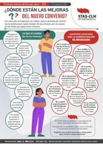 En STAS-CLM consideramos que algunas de estas cuestiones son indispensables para el próximo Convenio Colectivo, y que no suponen un verdadero gasto sino la solución a situaciones injustas o inexplicables dentro de la propia administración, por lo que exigimos a la Administración una actitud tolerante y constructiva de cara a terminar de una vez una negociación de un Convenio Colectivo en el que al menos podamos resolver determinadas injusticias.